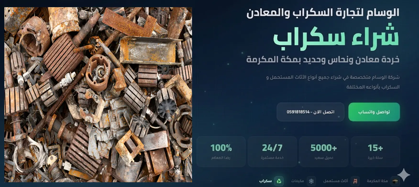 Every piece of metal sitting unused in your home, workshop, factory, or warehouse has real monetary value waiting to be unlocked. Do not let valuable materials rust away or take up space that could be put to better use. Contact Al Wessam today and convert your scrap into instant cash. We buy iron, copper, aluminum, stainless steel, brass, cables, broken AC units, vehicle scrap, demolition materials, restaurant equipment, and complete warehouse contents at the highest prices in Makkah with certified accurate weighing and instant payment. Call 0591818514 or send us a WhatsApp message now. We are available around the clock every day of the year in every neighborhood of Makkah Al Mukarramah. Al Wessam – Makkah’s most trusted scrap buyer.